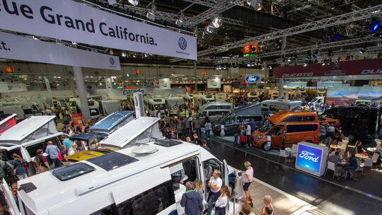 Wohnmobile, so weit das Auge reicht: Mit dem Grand California auf Crafter-Basis präsentiert Volkswagen einen der Hingucker des Caravan Salons.