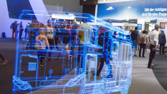 Hymer lässt seine Mobile auch virtuell per Projektion vorfahren.