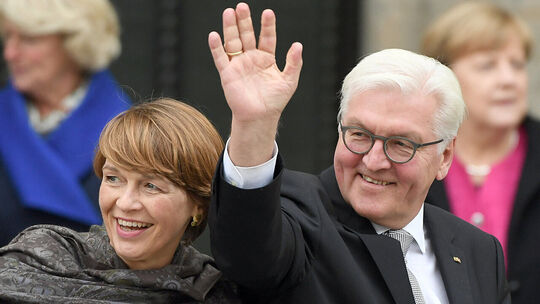 Bundespräsident Frank-Walter Steinmeier und seine Ehefrau Elke Büdenbender treffen zum Festakt des 500. Jahrestag des Beginns der Reformation in Witterberg ein.