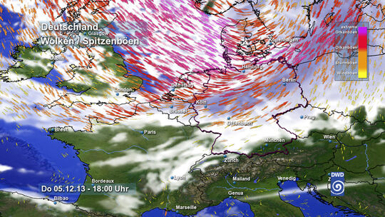 Laut dem Deutschen Wetterdienst verstärken sich im Laufe des Tages die Böen an der Küste von Nord- und Ostsee sowie dem angrenzenden Binnenland bis Orkanstärke mit Geschwindigkeiten von 120 bis 130 Stundenkilometern. Im Bereich der nordfriesischen Inseln muss zeitweise sogar mit extremen Orkanböen über 140 Stundenkilometern gerechnet werden. Wie der Deutsche Wetterdienst berichtet, können bis in die nördliche Mitte von Deutschland teils orkanartigen Böen beziehungsweise Sturmböen auftreten.