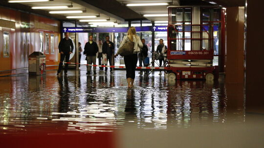 Wegen eines Wassereinbruchs am Südbahnhof fuhren nach Angaben der Verkehrsgesellschaft Frankfurt mehrere U-Bahn-Linien nur bis zum Willy-Brandt-Platz in der Innenstadt. Betroffen waren die Tram-Linien 14 und 17. Aufgrund eines Blitzeinschlags in einem Stellwerk kam es zu kleineren Verspätungen am Südbahnhof, wie die Bahn mitteilte.