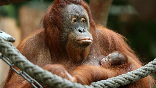 Zwei der wahrscheinlich 30 Opfer des Feuers im Krefelder Zoo: Orang-Utan-Dame Lea und ihre Tochter Suria .