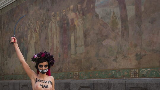 "Dictatorship must die" hat sich eine Femen-Aktivistin auf die Brust geschrieben. Sie kämpft gegen das diktatorische System in ihrem Heimatland Ukraine. Da hat die Femen-Bewegung auch ihren Ursprung.