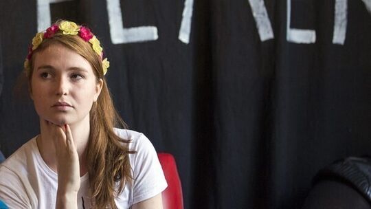 Die deusche Aktivistin Josephine Witt hat nicht zum ersten Mal Aufmerksamkeit erregt. Bei der Hannover Messe gehörte sie zu den fünf Frauen, die halbnackt auf Kanzlerin Angela Merkel und den russischen Präsidenten Wladimir Putin zustürmten. Hier auf dem Bild wird eine Ausstellung boykottiert.