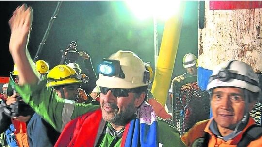 Wer könnte die Bilder je vergessen? Verschwitzte, müde, kohlenschwarze Gesichter, in denen aber Augen voller Hoffnung funkelten und die Zähne beim Lachen weiß aufblitzten. Es waren die ersten Videoaufnahmen aus der Tiefe. 17 lange, für die Familien schier unerträgliche Tage hatte es gedauert, bis ein Bohrer endlich an der richtigen Stelle durchbrach. Durch den schmalen Kanal kamen zuerst der erlösende Zettel und später auch Bilder nach oben. Chiles Präsident Sebastián Piñera reckte damals, am 22. August, das kleine zerknitterte Stückchen Papier in die Kameras und rief: „Heute weint ganz Chile vor Freude und Ergriffenheit.“