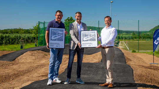 Zum Abschluss übergab Florian Wahl an Björn Ingendahl und Axel Blumenstein als symbolisches Zeichen der offiziellen Eröffnung den ersten erstellten Entwurf des Pumptracks. red