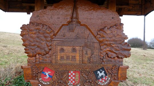 In der Umgebung von Bad Sobernheim sind einige Dörfer untergegangen. Auf dieser Holztafel wird an die Dörfer Rehborn, Pferdsfeld und Eckweiler erinnert, wie uns unser Leser Gernot Schauß mitteilt. Von ihm stammt auch das Foto.