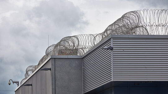 Stacheldraht auf der Außenmauer der Justizvollzugsanstalt Diez: Die JVA ist voll, es fehlt Personal, zwei Brandbriefe von Häftlingen erreichten deshalb unsere Zeitung. Wir haben das Justizministerium zu der Kritik in den Schreiben befragt. Thomas Frey. picture alliance / Thomas Frey/dpa