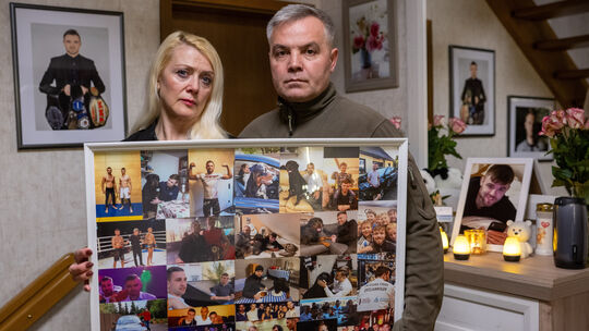 Irina und Michael Ovsjannikov mit Erinnerungen an ihren getöteten Sohn. Sohn Micha wurde auf der Säubrenner Kirmes getötet, der angeklagte US-Soldat freigesprochen. Harald Tittel. picture alliance/dpa