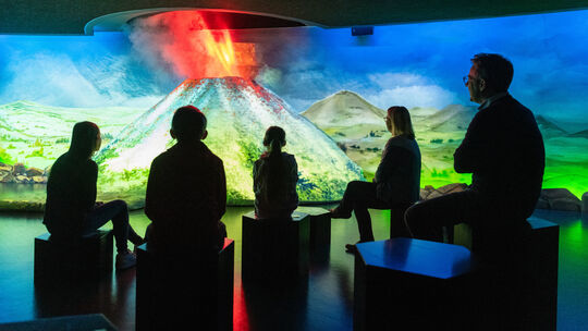 Vulkane haben die Landschaft der Eifel geformt. Im Lava-Dome, dem Deutschen Vulkanmuseum in Mendig, dreht sich alles um den Vulkanismus. Im „Land der Vulkane“ zum Beispiel erzählt eine multimediale Show die spektakuläre Geschichte zweier gewaltiger Vulkanausbrüche, die enorme Auswirkungen auf die Landschaft der Vulkaneifel hatten: der Ausbruch des Wingertsbergvulkans, auf dessen Lavastrom die Stadt Mendig steht, und des Laacher-See-Vulkans. Bilder, Klänge und Projektionen inszenieren virtuell einen Vulkanausbruch hautnah und intensiv. Dominik Ketz/Eifel Tourismus GmbH