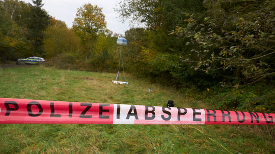 Ein Absperrband der Polizei: In Niederdürenbach in der Eifel (Kreis Ahrweiler) waren am Sonntagmorgen, 20. Oktober 2024, in unmittelbarer Nähe des Rodder Maars zwei Leichen gefunden worden. Thomas Frey/dpa