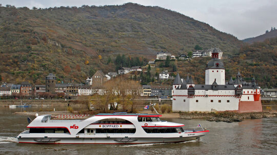Die Burg Pfalzgrafenstein steht wieder im Wasser – wochenlang sah das ganz anders aus.