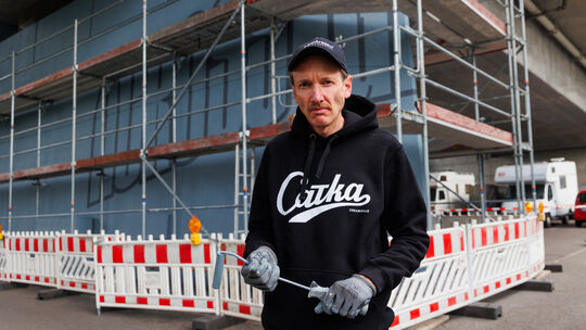 Auf das 17 Meter breite Wandbild, das hier in wenigen Tagen ins Auge fallen wird, deutet unter der Kurt-Schumacher-Brücke am Montag (noch) nicht wirklich viel hin: Zwischen tristen Betonpfeilern stehen dort, in Sichtweite zur Mosel, parkende Autos vor Altkleidercontainern, lichtraubende Bäume, umringt von asphaltiertem Grau, Männer mit Farbrollen auf einem Stahlgerüst – lediglich die Anwesenheit Hendrik Beikirchs lässt erahnen, dass an diesem ...