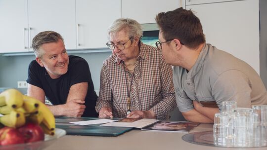 André Dietz (links) mit Heimbewohnerin Siglinde Lentes und Hilfspfleger Florian