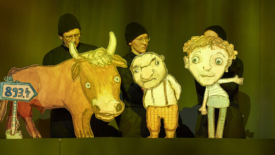 Ein besonderes Erlebnis für Groß und Klein ist die neue "Hans im Glück"-Inszenierung am Theater Koblenz vor allem natürlich auch dank der Puppenspieler (von links) Dietmar Bertram, Sophia Walther und Tanja Linnekogel (verdeckt). Matthias Baus. Theater Koblenz