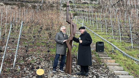Dass man nun „mit Fug und Recht von einer Kunstmeile“ sprechen könne, hatte Frank Hoffbauer mit Blick auf den nächsten Neuzugang des Projekts „Kunst im Uhlen“ betont – und der Vorsitzende der Kunsttage Winningen liegt damit wohl nicht ganz falsch: Schließlich ist die nun enthüllte Cortenstahl-Skulptur von Stefan Faas bereits das achte Kunstwerk in den Weinbergterrassen zwischen Kobern und Winningen (Kreis Mayen-Koblenz); allein vier davon kamen ...