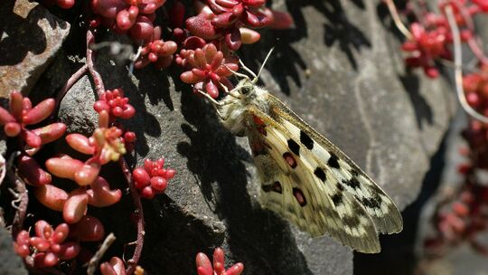 Die Deutsche Umwelthilfe und eine Arbeitsgemeinschaft von Schmetterlingsforschern sehen den Mosel-Apollofalter durch Luftspritzungen an der Mosel gefährdet. Eine Klage vor dem Verwaltungsgericht gegen solche Spritzungen im Jahr 2024 wurde nun abgewiesen. Thomas Frey. Thomas Frey/dpa
