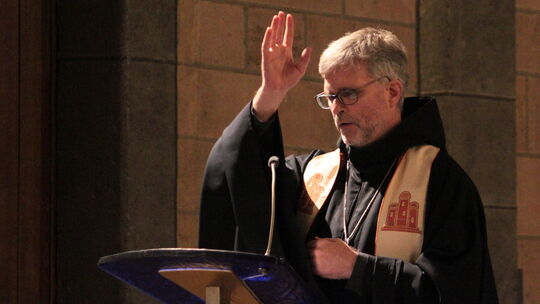 Pater Mauritius Wilde spendet den ersten Segen in seiner Funktion als neuer Abt von Maria Laach. Seit Anfang Oktober steht er der Benediktinerabtei vor. Martin Ingenhoven