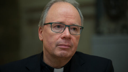 Der Fall Weißenfels begleitet Bischof Stephan Ackermann seit Beginn seiner Amtszeit. Für Aufregung sorgte, dass er im Jahr 2022 während einer Anhörung den Klarnamen der Betroffenen Karin Weißenfels nannte, die nur unter einem Pseudonym in der Öffentlichkeit auftritt. Harald Tittel. picture alliance/dpa