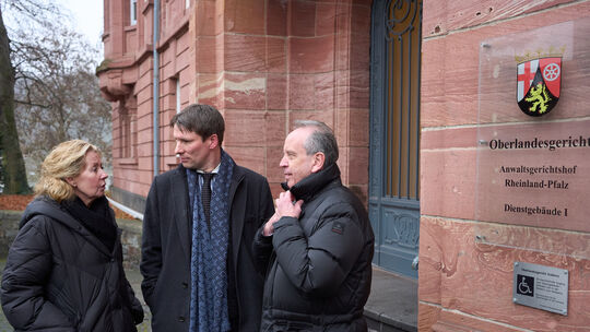 Ralph und Inka Orth und Rechtsanwalt Christian Hecken (Mitte) hatten Ende 2025 die Unterlagen zu einem Klageerzwingungsverfahren beim Oberlandesgericht in Koblenz eingereicht. Thomas Frey/dpa