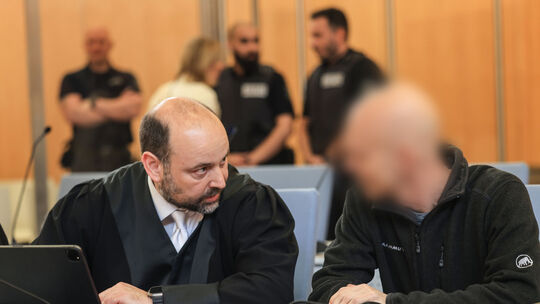 Der Hunsrücker Offizier mit seinem Anwalt im Gerichtssaal. Der mutmaßliche Spion Russlands muss sich vor dem Düsseldorfer Oberlandesgericht verantworten. Die Bundesstaatsanwaltschaft fordert dreieinhalb Jahre Haft. Oliver Berg/dpa