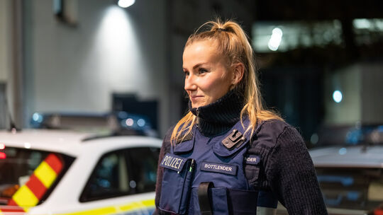 Lena Bottlender von der Polizeiinspektion Mainz ist bereits seit Staffel zwei Teil der Dokuserie "Nachtstreife". In der kommenden Staffel können Zuschauer ihr erneut über die Schulter schauen. SWR/Stephan F. F. Dinges