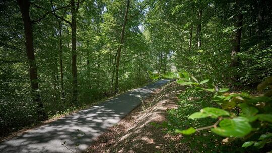 Auf diesem asphaltierten Waldweg in der Nähe des Koblenzer Stadtteils Arenberg liegt Anfang Juni Holz auf dem Boden. Ein 71-Jähriger hält sein Auto an, um den Weg freizuräumen – und damit beginnt der Horrorfilm. Foto: Sascha Ditscher Sascha Ditscher