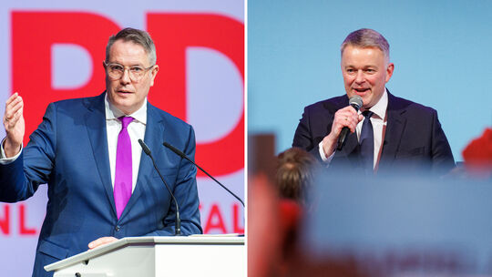 Ministerpräsident Alexander Schweitzer (SPD, li.) und Gordon Schnieder. dpa/Andreas Arnold/Hannes P Albert