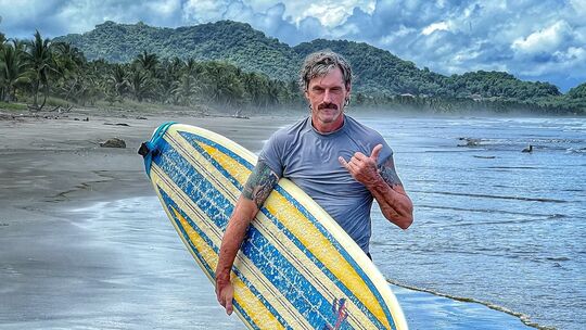 Ein Kauber in Costa Rica: Fast jeden Morgen reitet Fritzen mit seinem Brett in Shorts und T-Shirt durch die Gischt. Carsten Fritzen/privat