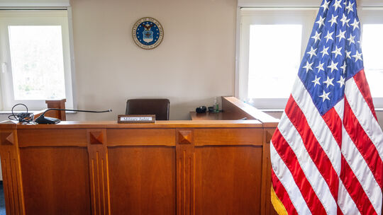 In diesem Saal auf der Airbase Spangdahlem musste sich ein US-Soldat wegen der tödlichen Messerattacke von Wittlich verantworten. Der Angeklagte wurde von einer Militärjury freigesprochen. Harald Tittel. picture alliance/dpa