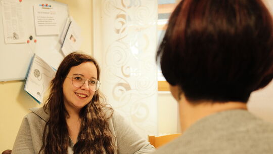 Kita-Sozialarbeiterin Melanie Gönemann (links) betreut die zweifache Mutter Sofia K. (rechts). Sie hilft der Alleinerziehenden bei Anträgen und steht ihr auch in akuten Notsituationen zur Seite. Michael Illjes