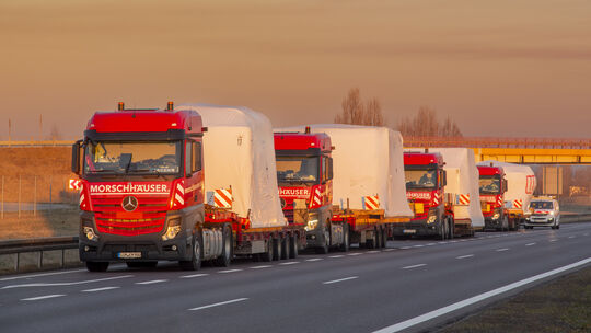 Großraum- und Schwerlasttransporte sind das Tagesgeschäft des Unternehmens Herbert Morschhäuser Transport GmbH aus Dörth (Rhein-Hunsrück-Kreis). Die Firma ist auf offene Transporte mit Tiefladern, also Anhängern von Lastwagen, spezialisiert. Für die Spezialspeditionen sind vorherige Prüfungen und Genehmigungen erforderlich. Wojciech Pusz/Morschhäuser