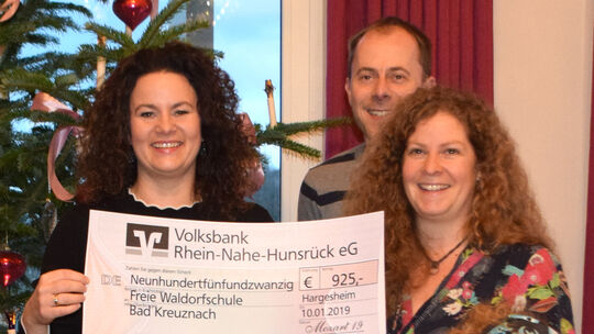 Beim Benefizkonzert „Unter dem Weihnachtsbaum“ im Studio des Sängerehepaares Sabine und Stefan Vinke kamen 925 Euro für den Verein „Lernen für das Leben“ der Waldorfschule Bad Kreuznach zusammen. An der Gestaltung des festlichen Programms wirkten mit: Stefan Vinke (Tenor), Sabine Vinke (Sopran), Sophia Vinke (Sopran), Carla Peekhaus (Sopran), Rosalie Wolthuis (Flöte und Geige), Larissa Kurmatschewa (Klavier und Gesang) und Jan Roelof Wolthuis ...