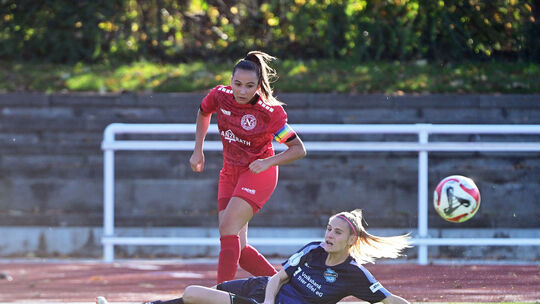 Mit dem 5:0 gegen den TuS Issel (blaue Trikots) hat der SC 13 (hier mit Kapitänin Lea Daiz) eine rundum gelungene Rückkehr ins Apollinarisstadion gefeiert. Dort soll es am Sonntag gegen Worms natürlich so weitergehen. Vollrath