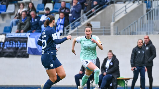 Nicht nur wegen ihres Ausgleichstreffers krönte sich Maren Weingarz zur besten Andernacher Spielerin beim 1:1 in Bochum. Auch mit ihrem Vorwärtsdrang brachte die linke Außenbahnspielerin das Spiel der Bäckermädchen voran. Norina Toenges. Norina Tönges