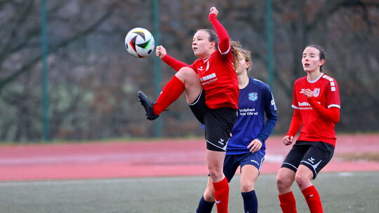 Die Holzbacher Abwehr um Hannah Wust (links) und Sophie Fritzen verrichtete einen guten Job gegen den Regionalligisten TuS Issel, zwei Gegentore musste man dennoch schlucken. Der Rheinlandliga-Tabellenzweite Holzbach unterlag in Simmern im Rheinlandpokal-Achtelfinale den Isselerinnen mit 0:2. B&P Schmitt