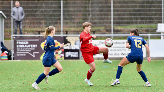 Da staunten die Spielerinnen der SG Andernach II: Marie Rudersdorf (rotes Trikot) und ihr SV Hundsangen zeigten keine Scheu vor dem großen Namen und mussten sich erst nach Verlängerung geschlagen geben. Andreas Hergenhahn
