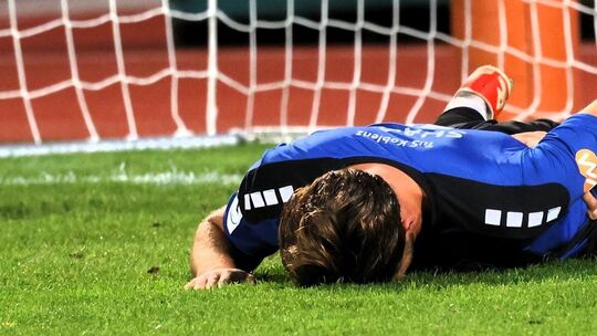 Das Bild sagt mehr als tausend Worte: TuS-Spieler Erijon Shaqiri liegt völlig enttäuscht am Boden des Oberwerther Stadionrasens, seine TuS Koblenz hat das Regionalliga-Heimspiel gegen den FC-Astoria Walldorf deutlich mit 0:4 verloren – am Tabellenende haben die Koblenzer nun schon elf Punkte Rückstand auf die rettenden Ränge. Foto: Jörg Niebergall Jörg Niebergall