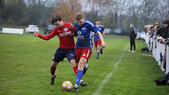Hart umkämpft war die Partie in Mörschbach: Die heimische SG (rote Trikots) um Leo Wilhelm setzte sich knapp mit 3:2 gegen die SG Westum/Löhndorf durch. Wilhelm gelang in der 58. Minute der 3:2-Siegtreffer. Christian Kiefer