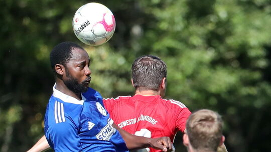 Im Derby gegen den TSV Emmelshausen muss die SG Liebshausen/Mörschbach/Argenthal am Sonntag (14.45 Uhr) vermutlich auf Verteidiger Serge Ndongo (links) verzichten. Er hat Wadenprobleme. Foto: B&P Schmitt B&P Schmitt