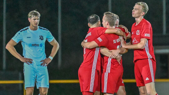 Jubelnde Gegner wie die SG Vordereifel beim 7:1 am Mittwoch, daneben ratlose Oberweseler wie Chris Jäckel (links) – solche Bilder gab es aus Sicht der SG Viertäler Oberwesel zuletzt zu oft. Mit nur sechs Punkten aus zehn Partien steht die SG auf einem Abstiegsplatz, das Heimspiel am Sonntag gegen den gut gestarteten Aufsteiger SSV Boppard ist absolut richtungsweisend für die Oberweseler. Foto: Mark Dieler Mark Dieler