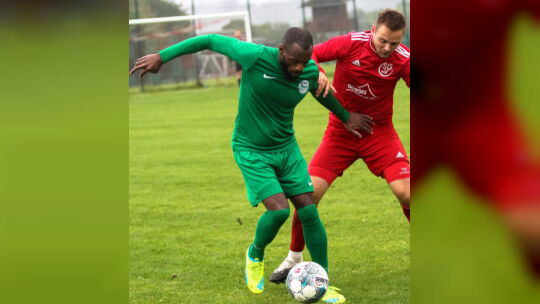 Jan-Patrick Kadiata und der TuS Oberwinter (links) waren eine Nummer zu groß für Kapitän Marc Thönnes und seine Vordereifeler, die in Laubach mit 0:4 gegen einen der Top-Favoriten auf den Aufstieg verloren. Kadiata traf ebenso zweimal wie Sturm-Hüne Thomas Enke. Alfons Benz