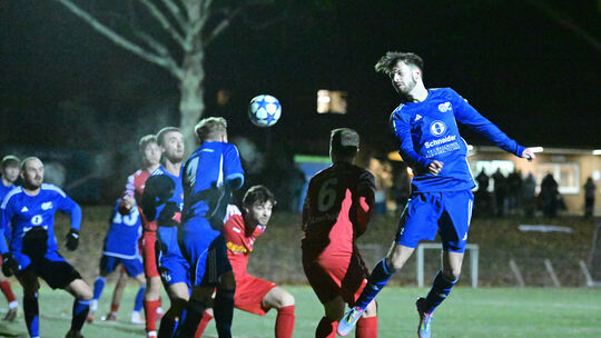 Zu wenig gute Szenen vor dem Mayener Tor wie hier der Kopfball von Lukas Gaydos (vorn rechts) erspielte sich die SG Westum/Löhndorf. Die TuS-Fußballer (in Rot) setzten sich mit 3:0 durch. Martin Gausmann. Ahr-Foto Martin Gausmann