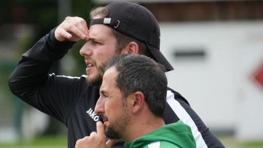 Mit voller Kraft in die letzten sechs Monate: Philipp Euteneuer (hinten) und Enis Caglayan (vorne) haben beide überraschend und aus unterschiedlichen Gründen ihren Ausstieg als Trainer der SG 06 Betzdorf im Sommer angekündigt. Der Abschied soll mit der Meisterschaft gekrönt werden. Andreas Hüsch/SG 06 Betzdorf