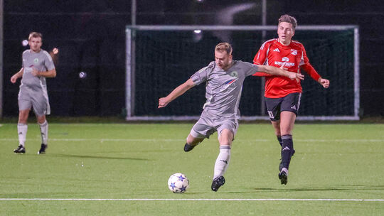 Noah Maxaner (am Ball) sorgte kurz nach der Pause für die Niederroßbacher Führung, auf die Burgschwalbach (rechts Kevin Siekmann) eine späte Antwort fand. Doch dabei blieb es nicht. Horst Wengenroth. Photo: (c) Horst Wengenroth 2025