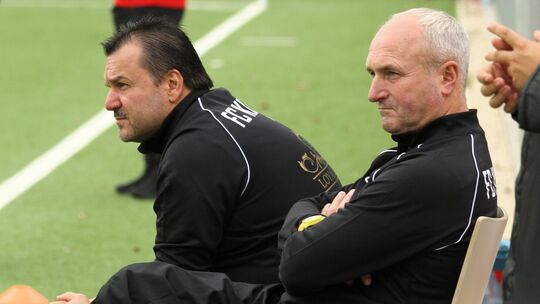 Kosovas Trainer Mladen Kulis (rechts) und sein Assistent Mesut Karadeniz mussten mit ansehen, wie ihr Team in Höhr-Grenzhausen im elften Spiel zum neunten Mal als Verlierer vom Feld ging. Marco Rosbach