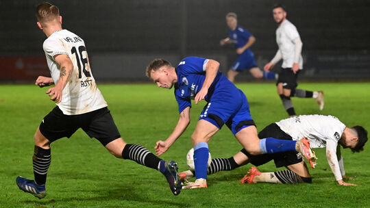 Lange stand die Partie auf der Kippe zwischen den Rheinlandligisten Wissen (in Blau) und Linz, am Ende strauchelte der Gastgeber und Linz setzte sich nach Verlängerung durch. Manfred Böhmer/balu