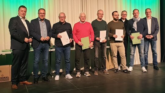 Zu den ersten Gratulanten beim Kreisehrenamtsabend des Fußballkreises Westerwald/Sieg gehörte auch DFB-Geschäftsführer Sport Andreas Rettig (Dritter von Rechts). Jens Kötting/Fußballkreis WW/Sieg