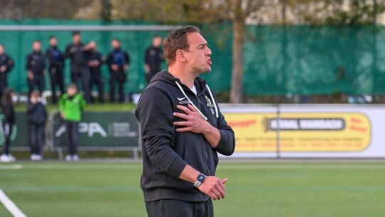 Sollte Thomas Klasen mit dem Regionalliga-Achten Eintracht Trier am Mittwochabend bei Cosmos Koblenz ins Achtelfinale des Rheinlandpokals einziehen, wird er am 4. März 2026 wieder an gleicher Stelle wie auf unserem Foto stehen, denn dann ginge es für die Eintracht zu Angstgegner Engers, bei dem Trier in der Vorsaison im Halbfinale mit 1:2 die Segel streichen musste. Mark Dieler