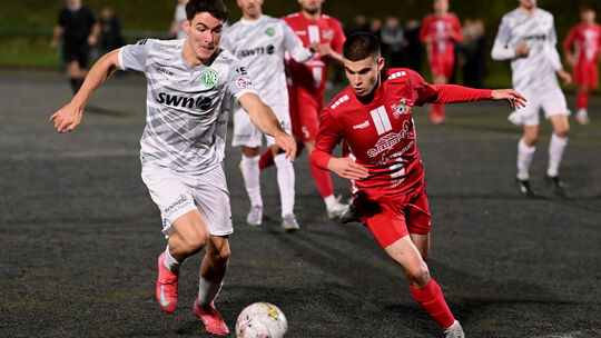 Die Rückkehrer des aus Atzelgift stammenden Gabriel Müller (links) mit dem Oberligisten nach Malberg war letztlich eine erfolgreiche, auch wenn der Rheinlandpokal-Titelverteidiger FV Engers 120 Minuten brauchte, um mit 3:1 gegen die SG um Paul Hassel zu gewinnen. Manfred Böhmer/balu